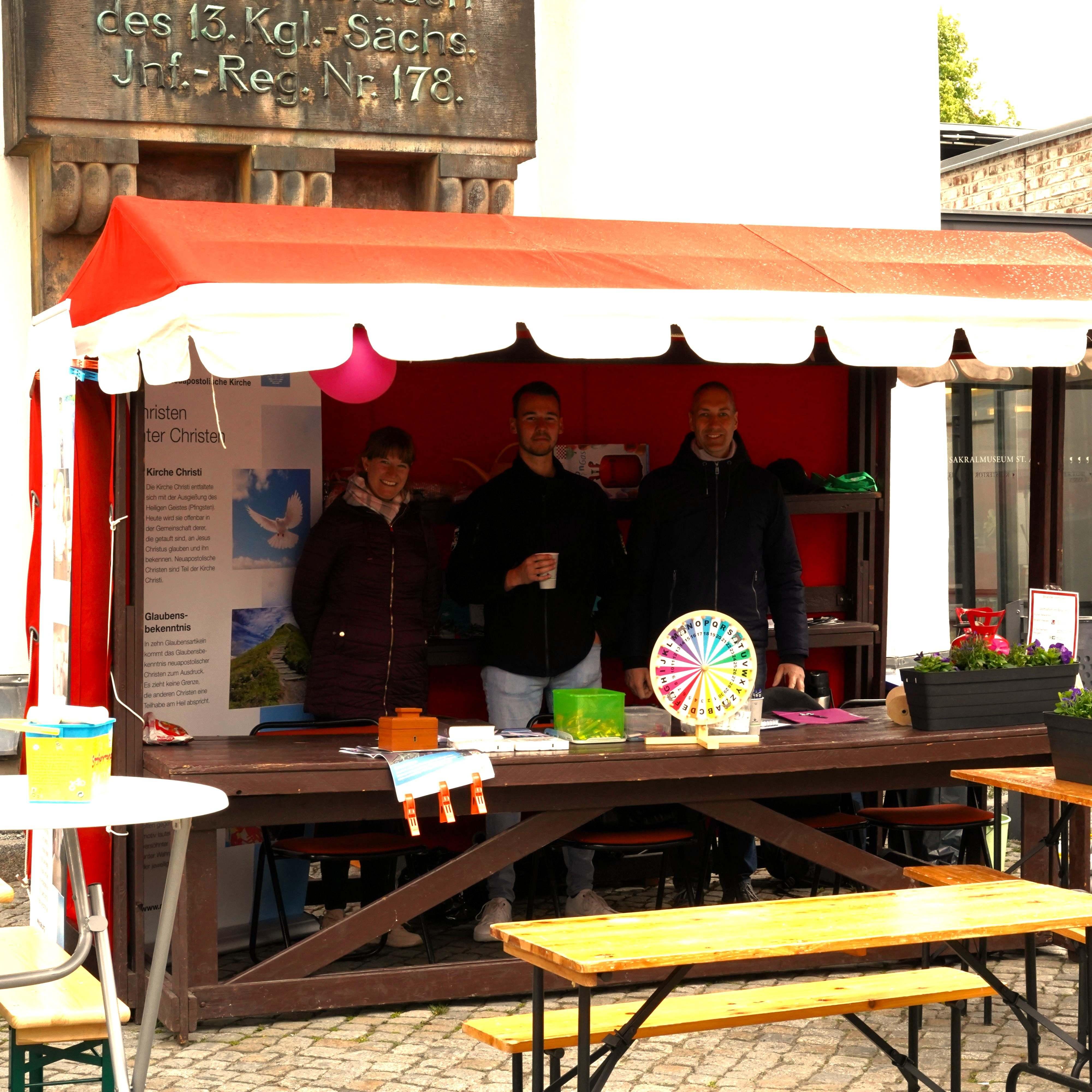 Geschwister aus vielen Gemeinden der Umgebung teilten sich an den drei Tagen des Stadtfests zu 800 Jahren Kamenz die Aufgabe, einen Stand zu betreuen, an dem mit verschiedenen Aktionen die Neuapostolische Kirche vorgestellt wurde und ein Angebot zum Gespräch über den christlichen Glauben an alle Festbesucher entstand. Luftballons für die Kinder, die Möglichkeit mit Straßenmalkreide kreativ zu werden, ein Glücksrad, das zu Fragen eines Quiz führte und vieles mehr lockten die Besucher an den Stand. Vielen Dank an alle die in Vorbereitung und Durchführung dieser besonderen Tage beteiligt waren!