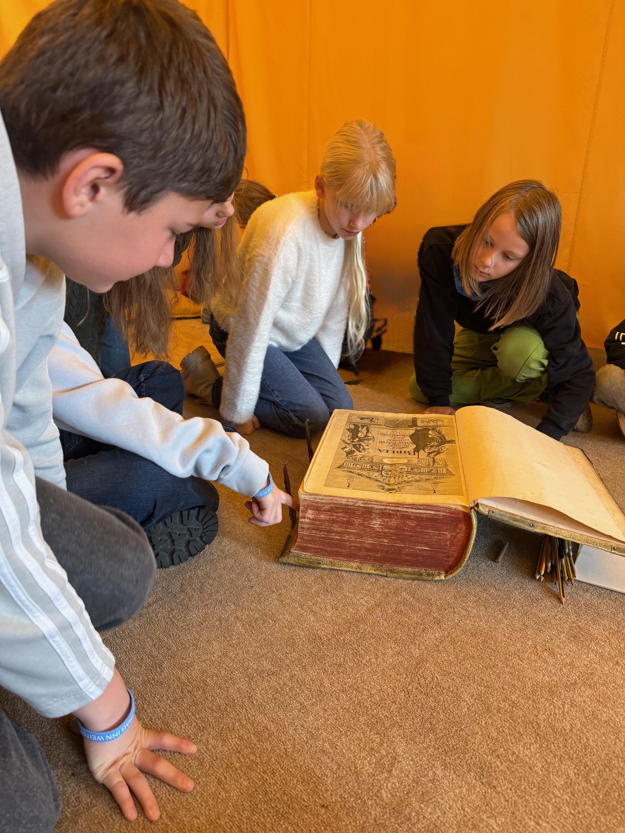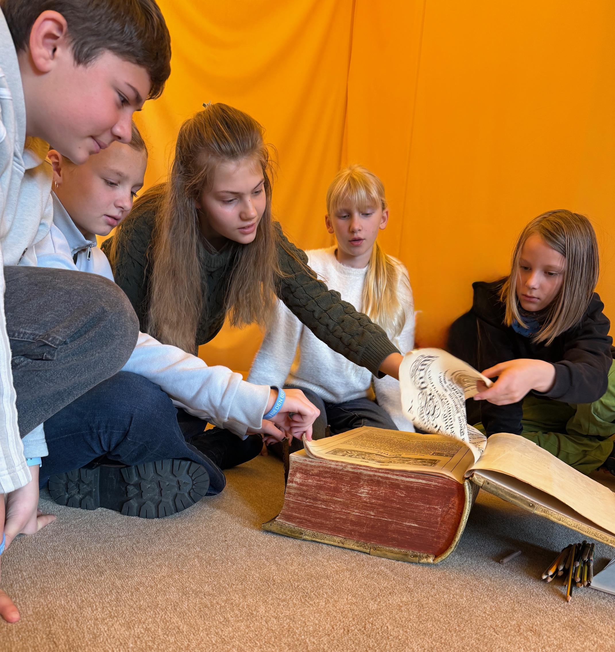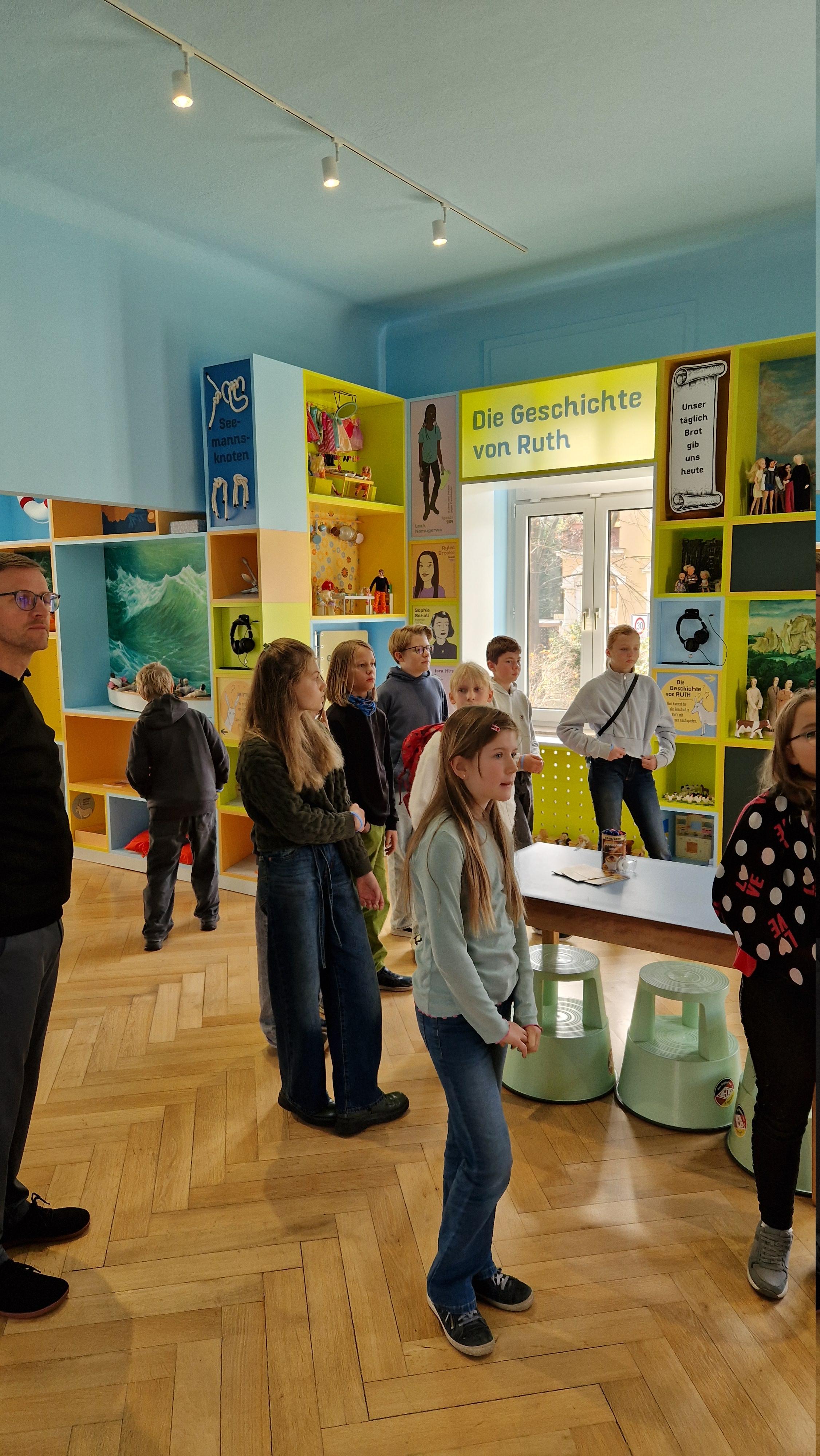 Die Relis (so werden die Religionsschüler in unseren Gemeinden genannt) haben sich an einem Samstagmorgen im November in Dresden am Bibelhaus getroffen. Das Bibelhaus – eine interaktive Ausstellung zur WUNDERKAMMER BIBEL zum STAUNEN, ENTDECKEN und BEGREIFEN - ist in der Nähe vom „Blauen Wunder“…eine der Dresdner Elbbrücken aus Stahl. Dort wurden wir wunderbar überrascht mit Neuigkeiten, konnten eine 11,3kg schwere Bibel in der Hand halten, wissen jetzt, warum es heißt die Bibel aufschlagen und noch einiges mehr. Bei vielen Fragen konnten wir Relis auch die passende Antwort geben. Das Pergament zum Anfassen, haben auch unsere starken Jungs nicht zerreißen können …was für eine stabile und gleichzeitig leichte Schreibunterlage, die sich zum Transport eignete. Die interaktive Ausstellung lud zum Anfassen und Mitmachen ein und zeigte, wie aktuell die Bibel auch heute noch ist.
